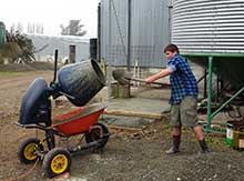 Every year we make improvements at our feedmill, always fine tuning as well as increasing our production capacity. This year some of these improvements needed a small amount of concrete. So for the first time in a long time we decided to mix our own concrete. I borrowed a mixer and Daniel my youngest son, age 13, volunteered to do the mixing. Daniel enjoyed the experience and it made me think of the things we did as kids growing up on a farm that are no longer done. Like plunge dipping sheep, carting conventional bales of hay, feeding out that same hay with the Bedford truck. The list of jobs we did then that are no longer done today is long. And I am sure that work shaped us for our adult lives. So what jobs can our kids do today that will teach them good work ethics for later in life? I'm not sure but I'm glad I borrowed the concrete mixer.